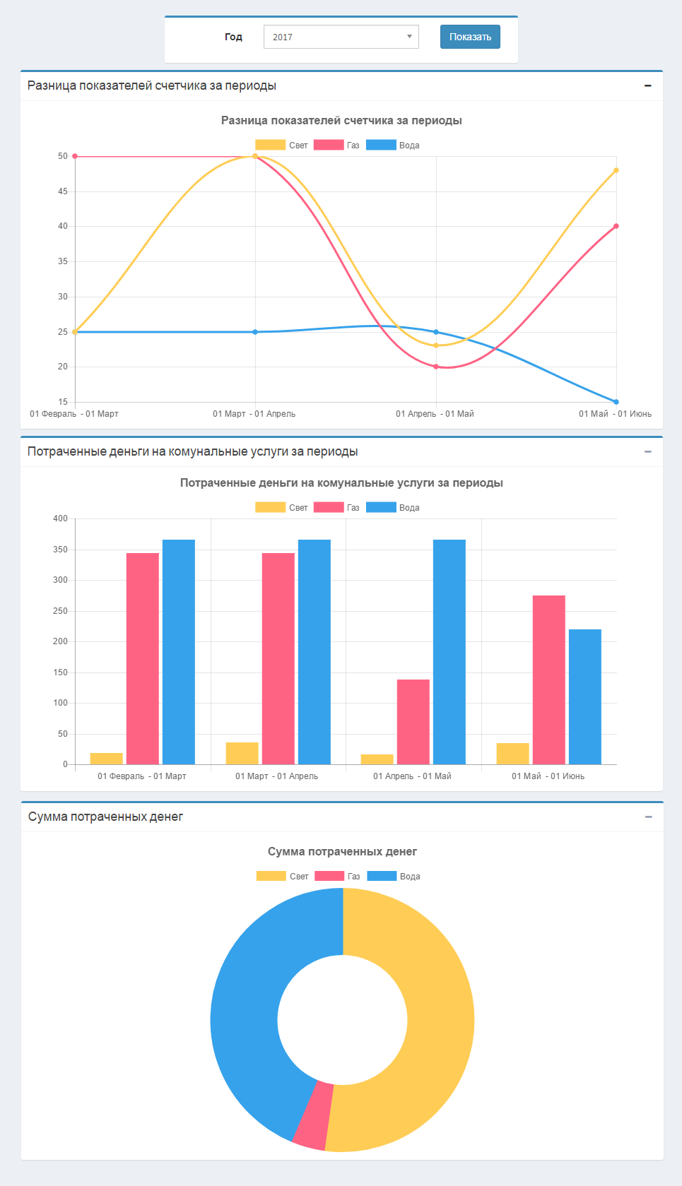 В пункте меню Органайзер/Стастикаю мы можем увидеть фильтр по годам, а так же графики за этот год, по периодам.