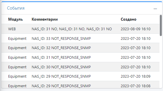 Модуль позволяет сохранять и отображать события возникающие в системе.